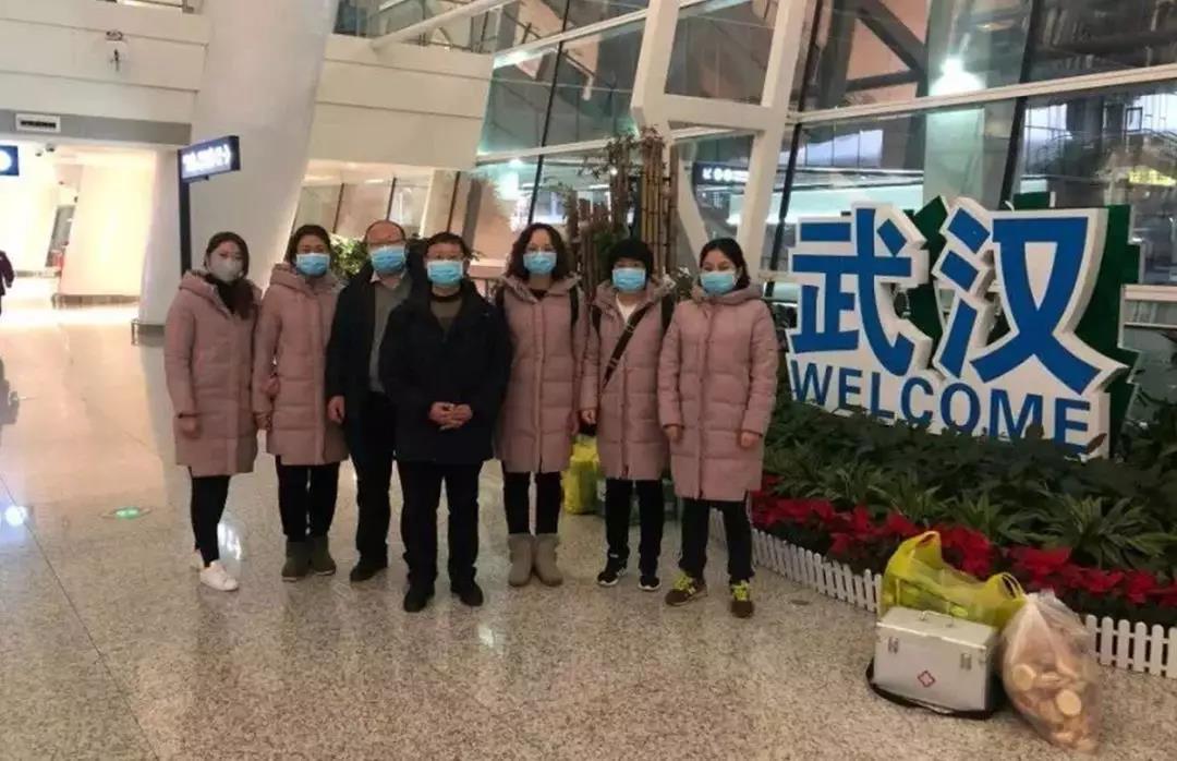 中國(guó)兵器支援武漢醫(yī)療隊(duì)到達(dá)武漢(左7王敏、左1王曉霞)